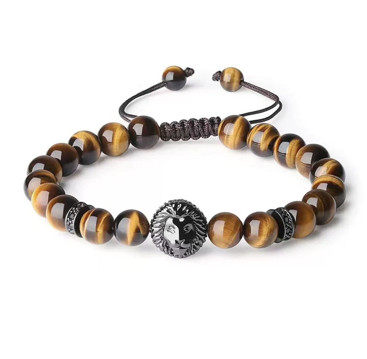 ICEGANG Natural Tiger's Eye Stone Men's Bracelet (Adjustable Size)